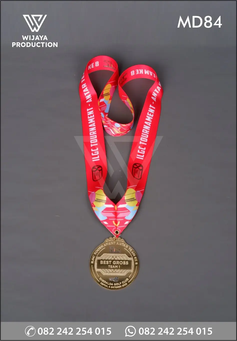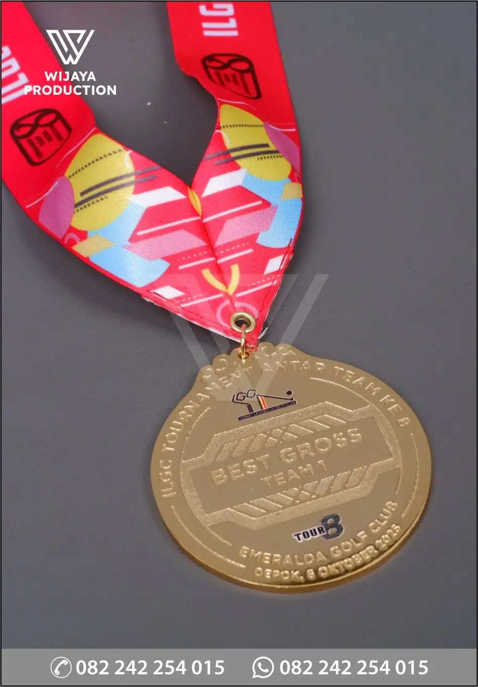 Sebagian besar medali digunakan untuk penghargaan atau apresiasi seseorang individu maupun kelompok. Sebagai bentuk pencapaian, medali berkualitas sangat dibutuhkan. Seperti contoh Medali ILGC Tournament Antar Team diatas yang terbuat dari material logam kuningan finishing etsa masir chrome gold model desain custom. Untuk bagian kalung medali menggunakan material satin warna & materi printing.