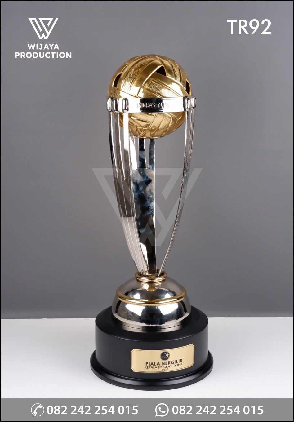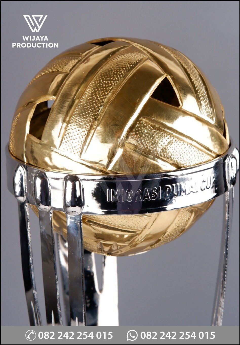 Salah satu contoh produk piala bergilir untuk gelaran sepak takraw yang diadakan Kantor Imigrasi Dumai. Piala yang terbuat dari material logam kuningan finishing chrome emas dan silver dengan membentuk pola bola takraw yang di lapisi emas. Untuk bagian dudukan di buat bentuk bulat yang menggunakan kayu warna hitam doff.