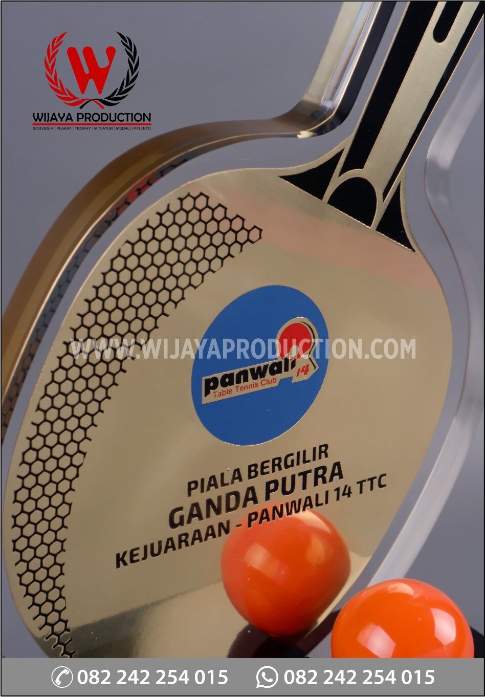 Dalam pembuatan piala bergilir pingpong kejuaraan panwali ini, kami mengedepankan quality control sesuai standar yang kami tetapkan. Mulai dari desain, pemilihan material bahan berkualitas, teknis pengerjaan, perakitan serta proses pengiriman produk agar terjamin aman.