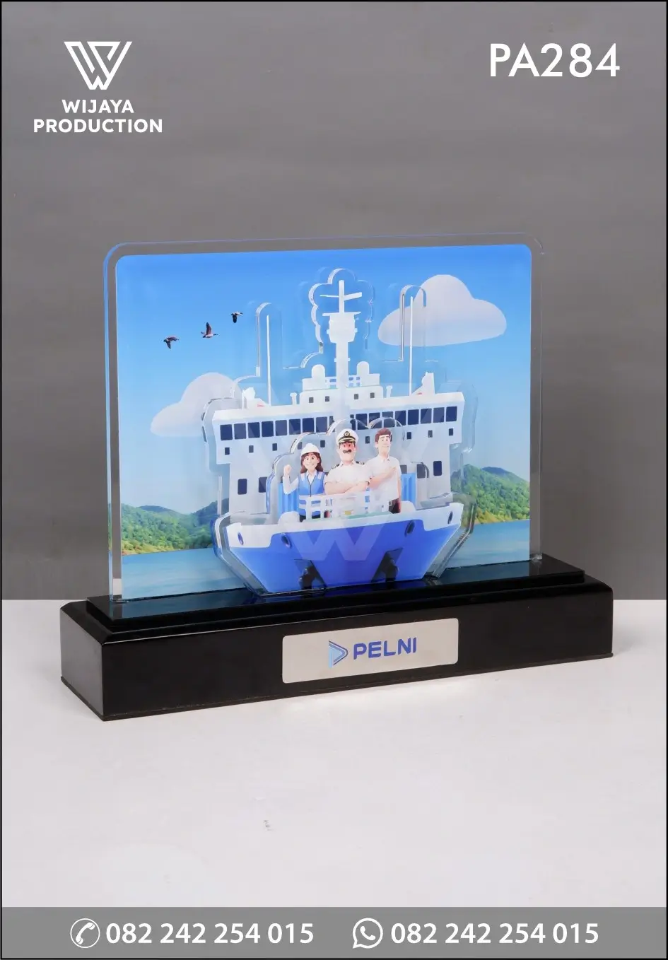 Berikan apresiasi dan kenang-kenangan yang berkesan dengan Plakat Akrilik 3D Eksklusif, sebuah cinderamata unik yang dirancang khusus untuk merepresentasikan identitas dan kebanggaan instansi Anda. Seperti contoh pada gambar, plakat ini didesain khusus untuk PT Pelayaran Nasional Indonesia (PELNI) dengan menampilkan diorama armada kapal penumpang dan kru yang ikonik, menjadikannya simbol dedikasi dan profesionalisme di industri maritim nusantara.