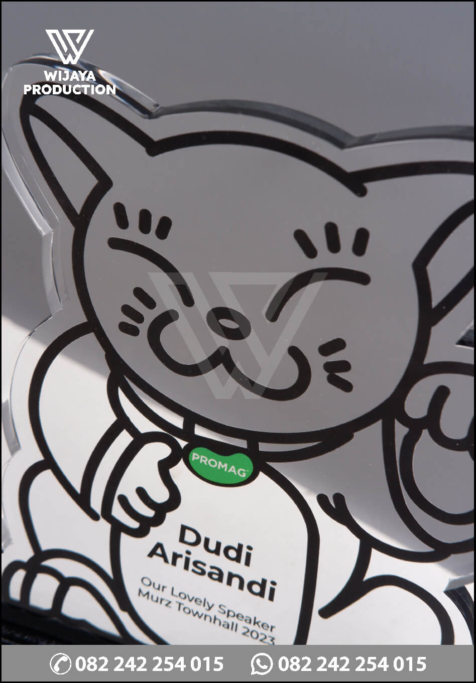 Dalam pembuatan plakat akrilik Maneki Neko ini, kami mengedepankan quality control sesuai standar yang kami tetapkan. Mulai dari desain, pemilihan material bahan berkualitas, teknis pengerjaan, perakitan serta proses packing untuk pengiriman produk yang aman sampai tujuan.
