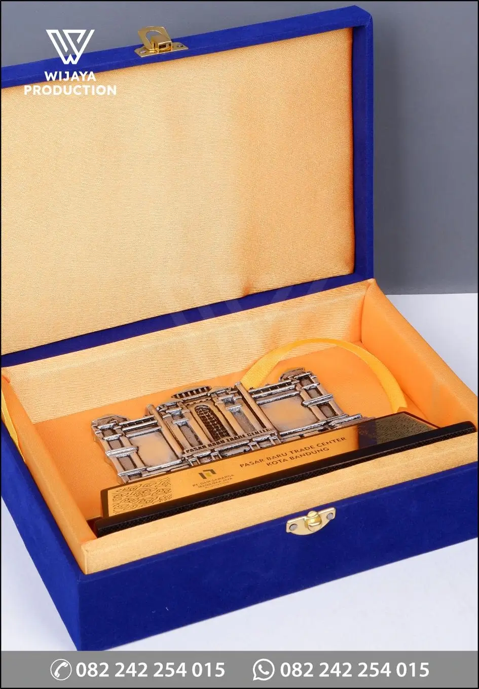 Plakat Logam PL108 merupakan plakat eksklusif dengan konsep miniatur bangunan ikonik Pasar Baru Trade Center Kota Bandung. Desain arsitektur ditampilkan secara detail melalui teknik cutting dan engraving logam aluminium presisi, menghasilkan relief dua dimensi yang kuat, rapi, dan berkarakter heritage.