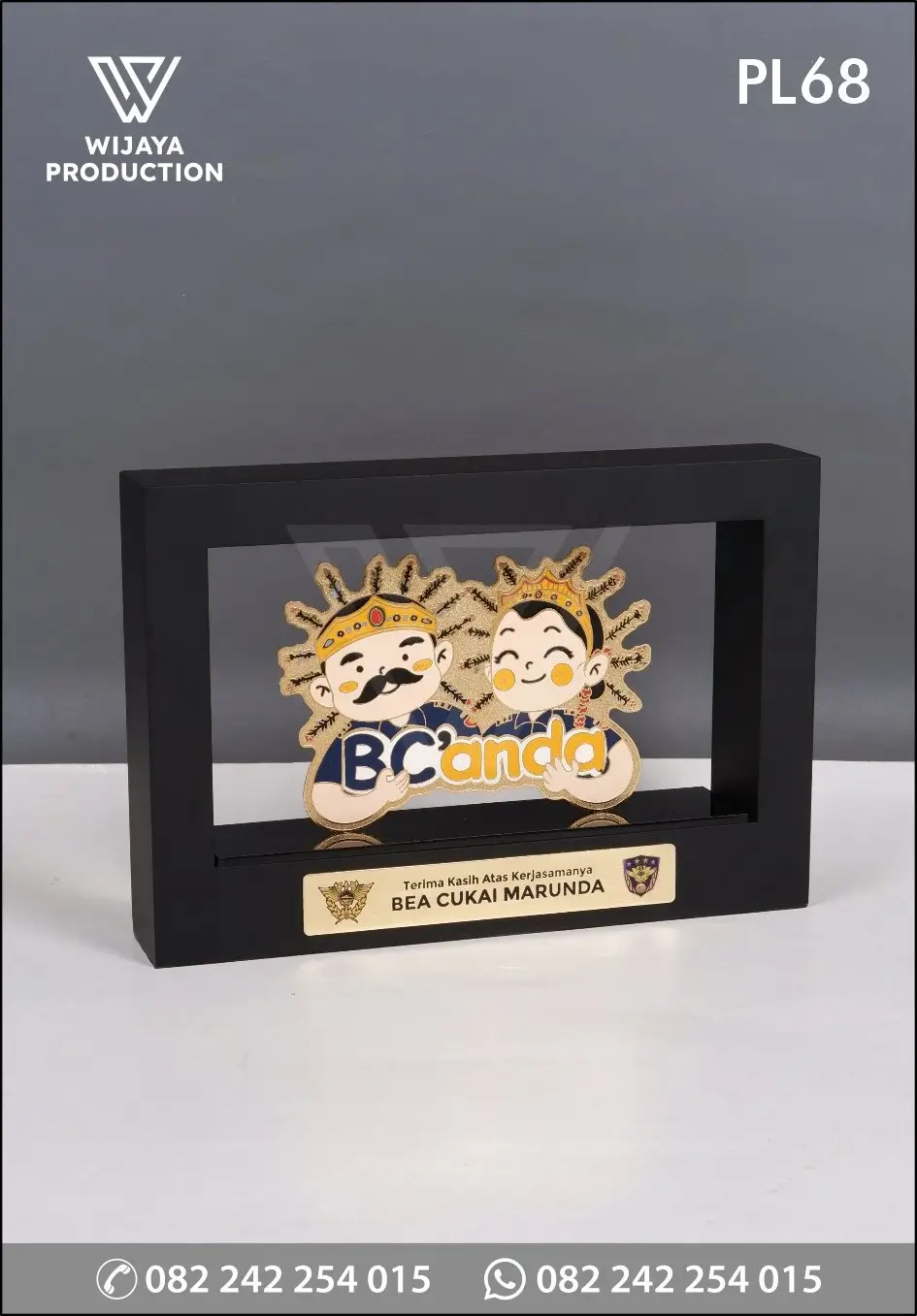 - Personalisasi: Plat kuningan etsa materi tulisan”Terima Kasih Atas Kerjasamanya BEA CUKAI MARUNDA”
