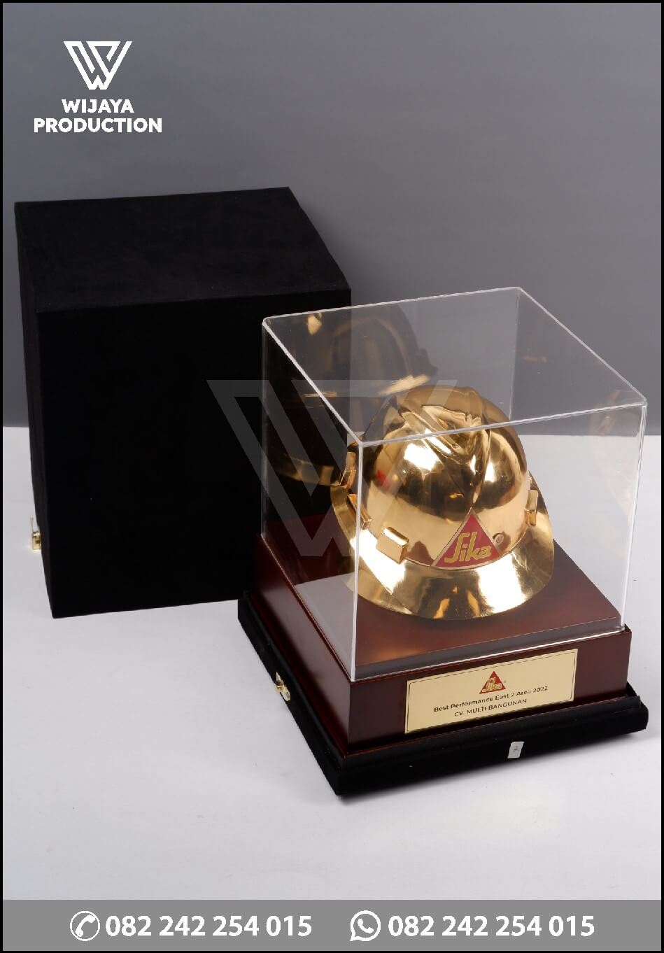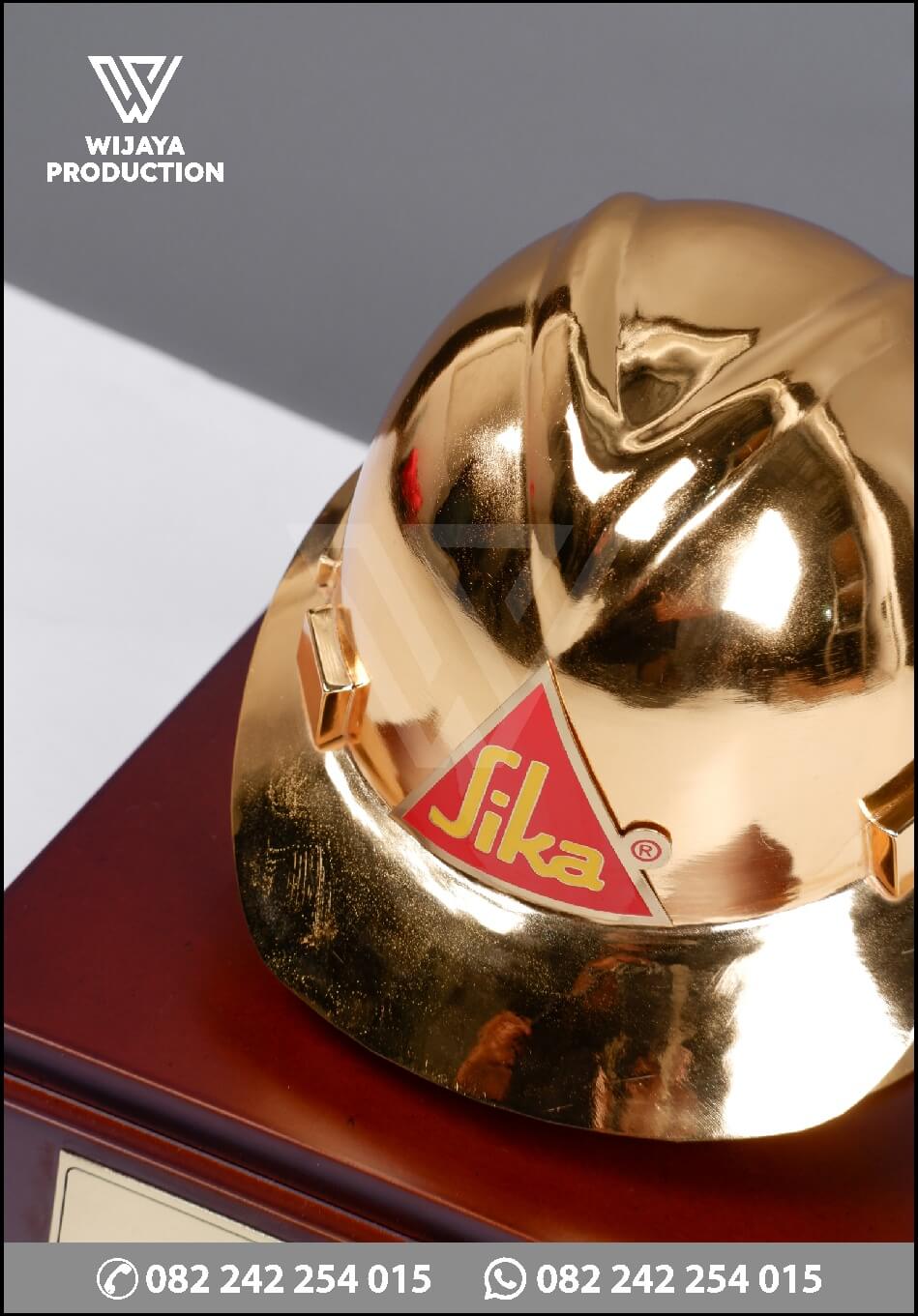 Souvenir helm Sika merupakan salah satu seni kerajinan jenis logam yang berbentuk helm untuk event Best Perfomance East 2 Area. Di buat oleh para pengrajin ahli kami dengan penuh kesabaran dan ketelitian, karena proses pembuatannya yang cukup membutuhkan waktu. Penggunaan material logam kuningan finishing chrome gold plated. Untuk bagian dudukan menggunakan material kayu warna coklat doff.