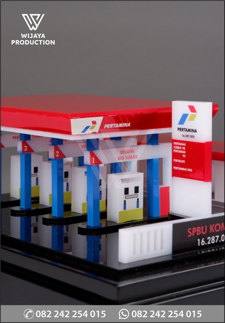 Selain membuat souvenir miniatur SPBU dengan model seperti ini, kami juga menerima pemesanan miniatur dengan contoh model lainnya. Seperti miniatur alat berat, miniatur bangunan, miniatur icon, miniatur jembatan, miniatur pertambangan, dan miniatur lainnya atau custom sesuai kebutuhan Anda. Untuk masalah desain serahkan saja pada tim kami atau jika Anda mempunyai desain sendiri, langsung saja tuangkan ide Anda dan konsultasikan dengan tim desain kami.